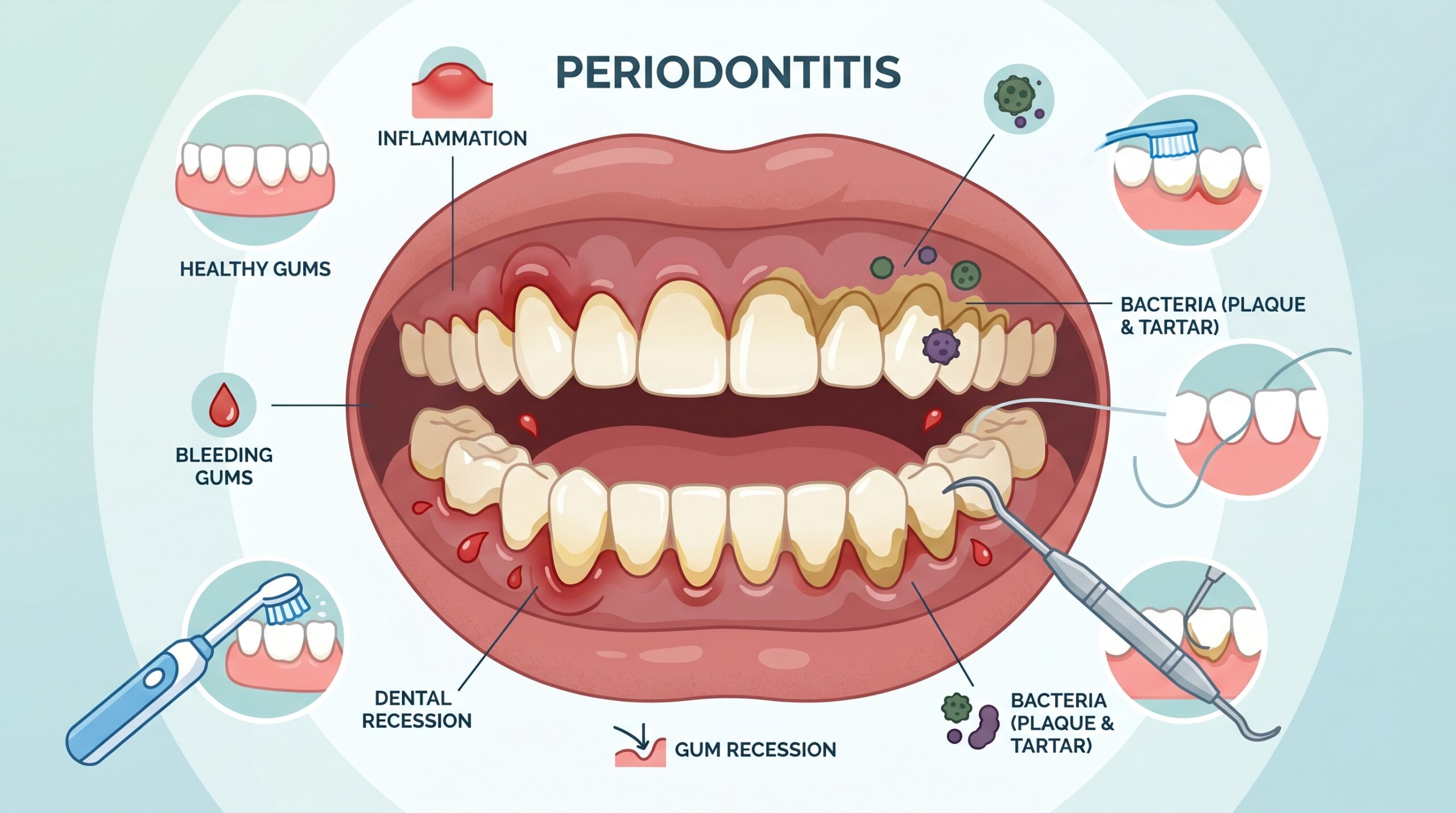 La periodontitis es una enfermedad grave, pero en gran medida prevenible si se actúa a tiempo. Ignorar los primeros síntomas puede llevar a consecuencias importantes, como la pérdida de dientes.